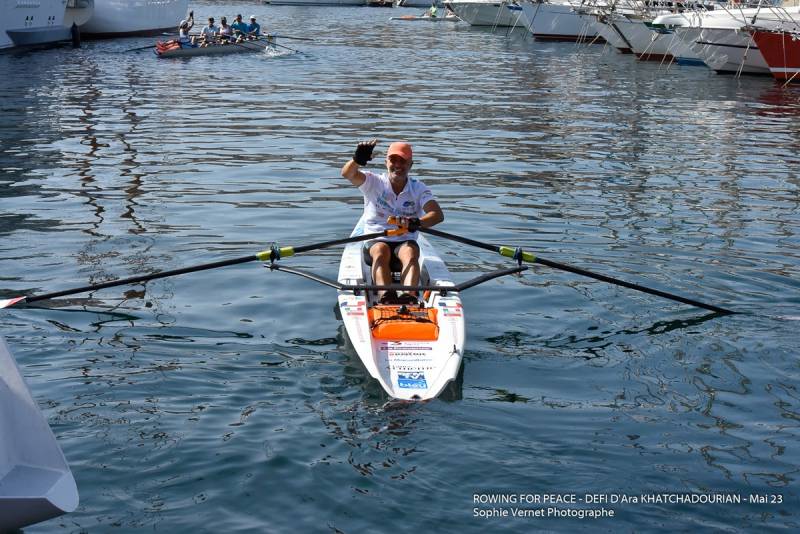 Ca y'est, il est parti en Méditerranée le samedi 27 mai 2023 à 9h au Quai d’honneur du Vieux-Port, Marseille pour son "Rowing for Peace".